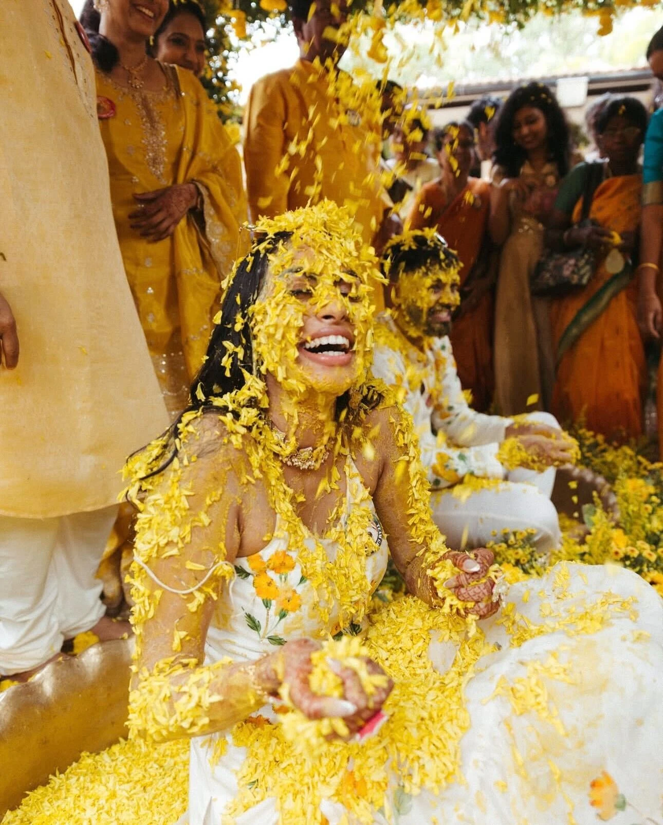The Haldi ceremony is one of the most playful and intimate pre‑wedding rituals. In this event, close family and friends apply a turmeric-based paste to the bride and groom as a blessing. It’s a joyful gathering, but it can also get messy—turmeric stains!