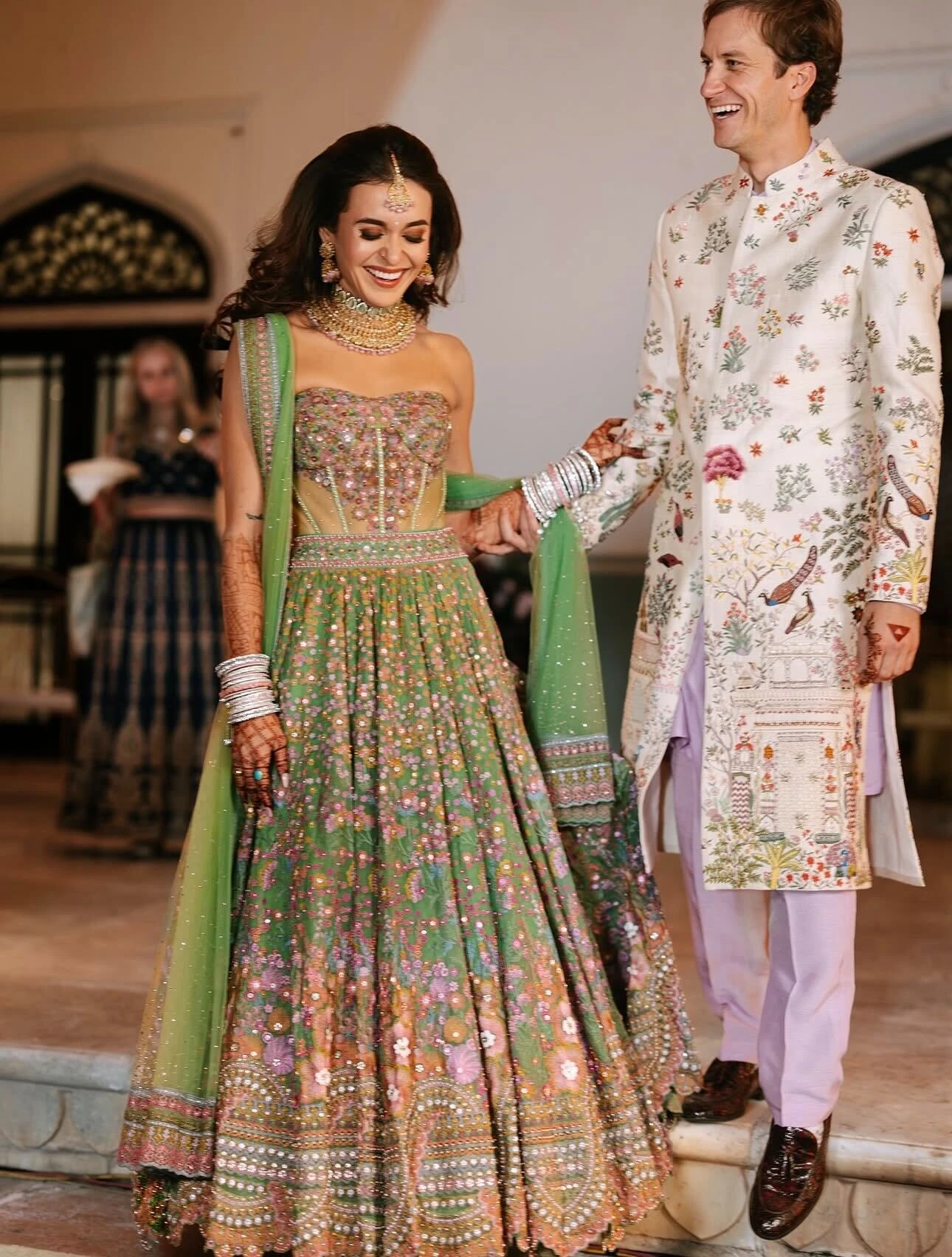 For guests new to traditional Indian attire, both saris and lehengas are beautiful and appropriate. Pre‑draped saris and lightweight lehengas offer an easier, more beginner‑friendly experience while still looking elegant in photos.
