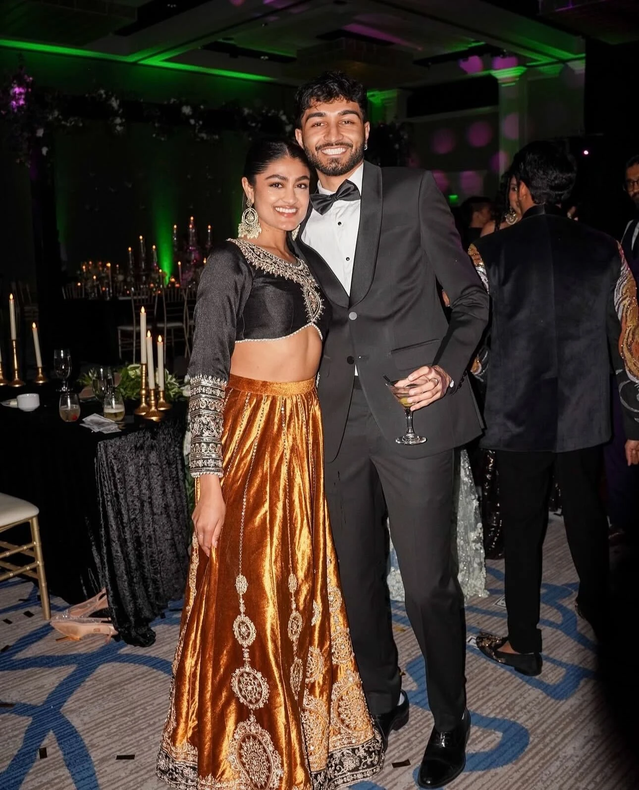 This event calls for sparkle, movement, and fun. Dance‑friendly lehengas, pre‑draped saris, or modest evening gowns are great options. Look for secure blouses, breathable linings, and silhouettes that let you move comfortably. Jewel tones—like sapphire, emerald, plum, ruby, or magenta—as well as metallics and sequins, are especially fitting for the stage lights and festive atmosphere.