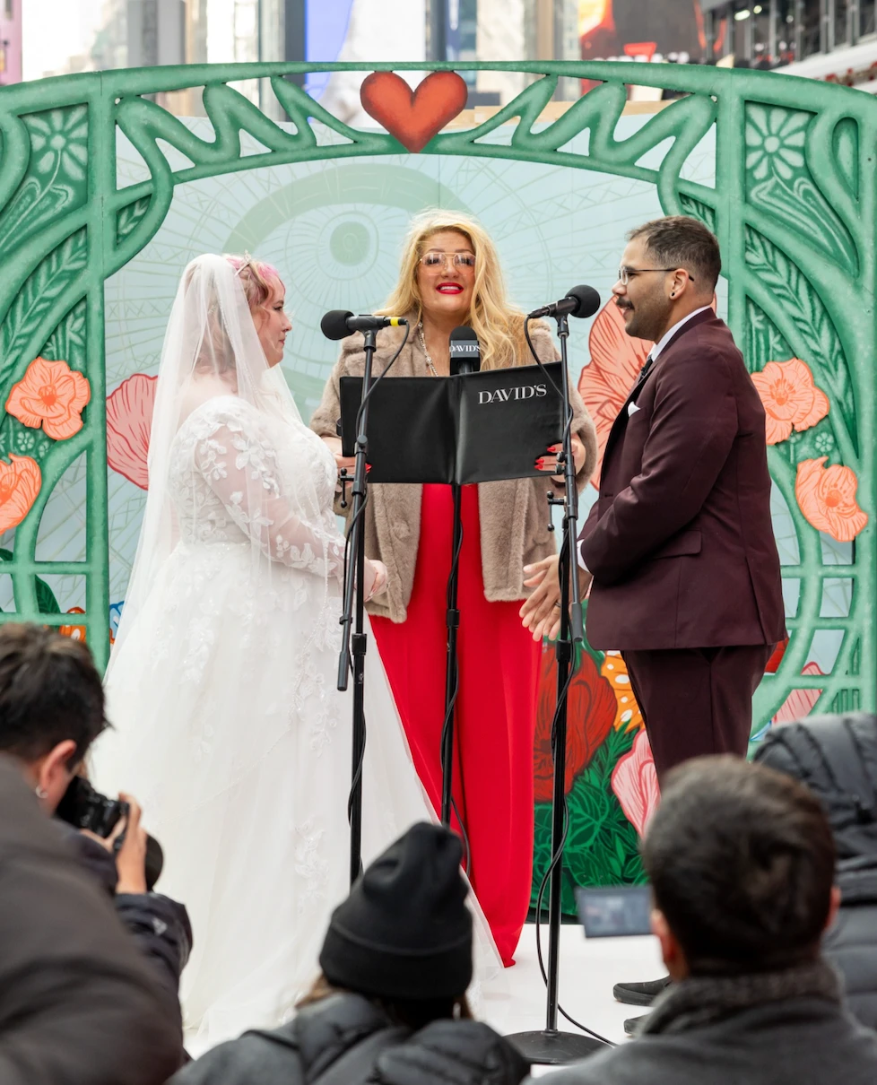 Hundreds of couples gathered in the Crossroads of the World for a once‑in‑a‑lifetime opportunity: to say yes (or yes again) in the middle of Times Square.