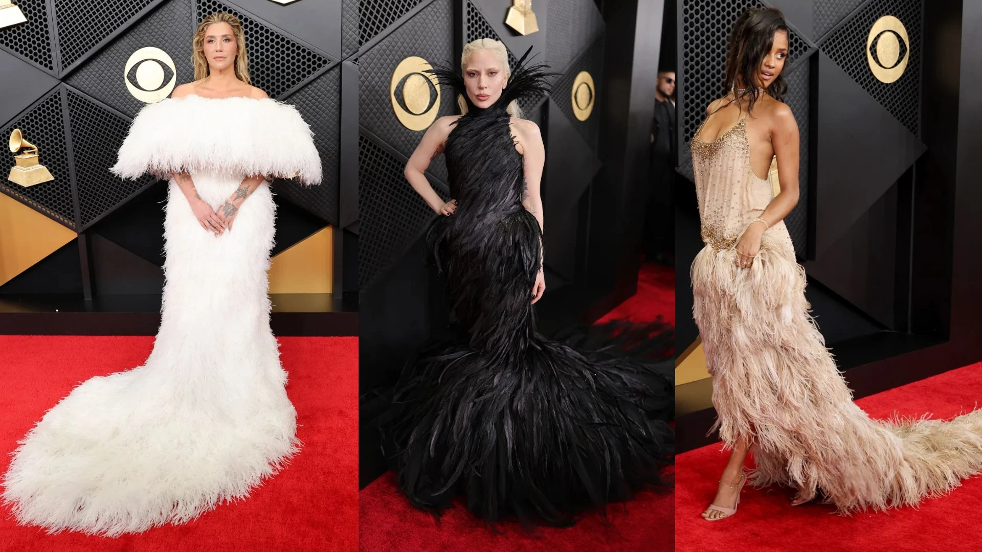 In short: long live feathers! Feathers were one of the most photographed textures of the night, bringing movement and personality to an otherwise classic silhouette. From Lady Gaga's theatrical feathered gown to Tyla's lighter, playful accents, this trend is all about just enough excess.