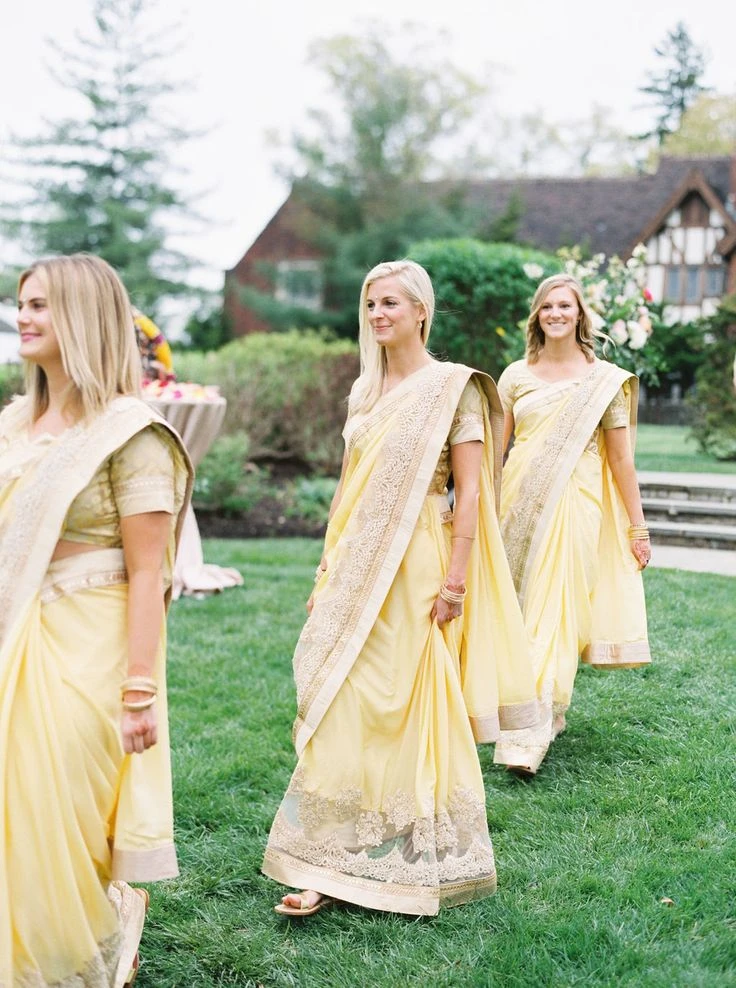 Yellow, mustard, and marigold—these match the joyful turmeric ritual.
