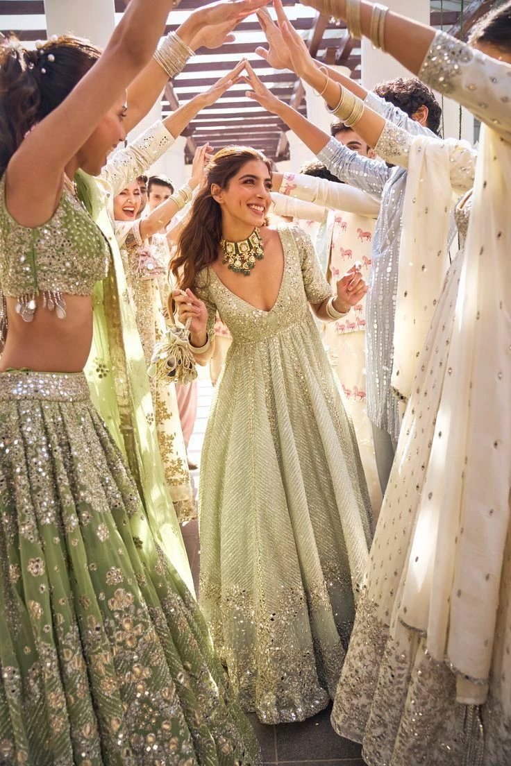 Suggested looks: Lightweight lehengas, sharara sets, printed or pre‑draped saris. As this is typically a more informal pre-wedding ceremony, traditional Indian attire is not required. However, if you choose to wear a Western look, make sure you preserve modesty out of respect for the couple.