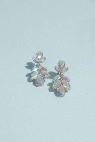 Made from faceted crystals in an iridescent finish that catches the light, these drop earrings feature teardrops bordered by leaf accents.