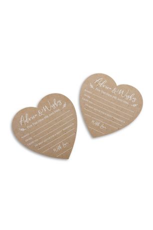Marriage advice for the new bride and groom is shared in a special way with these keepsake Wedding Advice Cards in a set of 50! The heart shaped cards create a reception activity that allows guests to share their words of wisdom to the couple, which the couple can then treasure forever in a frame or kept inside of a special box. The wedding well wishes are a treasured way for guests to share their bits of knowledge and wishes for a happy life to the ones they love!