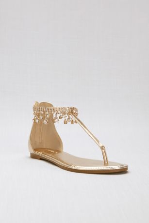 Jeweled Fringe Metallic Ankle-Wrap Thong Sandals