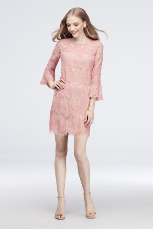 Pretty 3/4 bell sleeves and a scalloped hemline make this lace shift dress super feminine and a little bit boho.