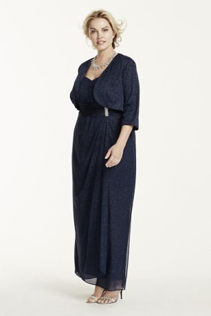 3/4 Sleeve Jacket with Long Glitter Mesh Dress