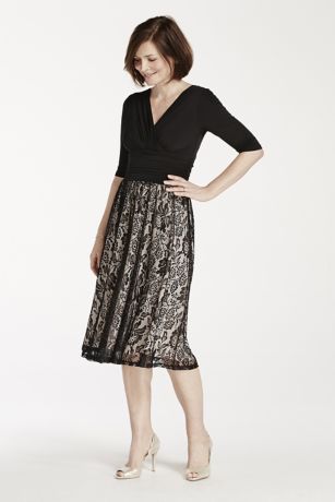 3/4 Sleeve Jersey Dress with Floral Lace Skirt