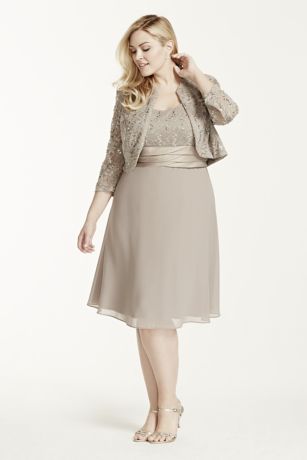 Chic, stunning, and above all stylish! You will not be missed in this beautiful lace and chiffon jacket dress!