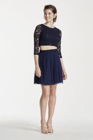 3/4 Sleeve Sequin Crop Top with Short Mesh Skirt