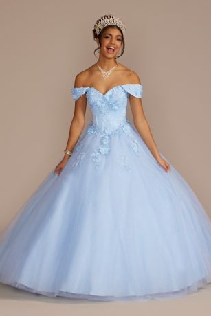 Your grand entrance into womanhood will be one to remember in a dazzling three piece glitter ball gown. No quinceanera dress is complete without 3D floral appliques, an encrusted corset bodice, and a lace-up back. Make your dress completely your own with convertible straps that can be worn off the shoulder, as a tank, or removed entirely! Take it up a notch with an interchangeable skirt -- keep it long and voluminous for your quince waltz, then go short for partying all evening long!