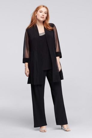 3-Piece Plus Size Pantsuit with Beaded Neckline