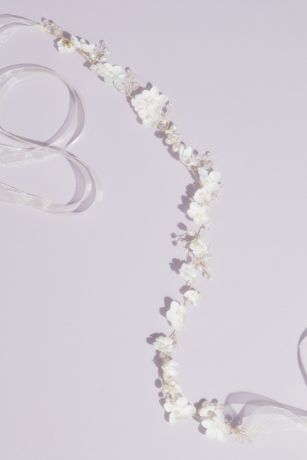 Hand wired 3D flowers, beads, and pearls make this sash standout. The organza ribbon blends beautifully with any wedding dress.