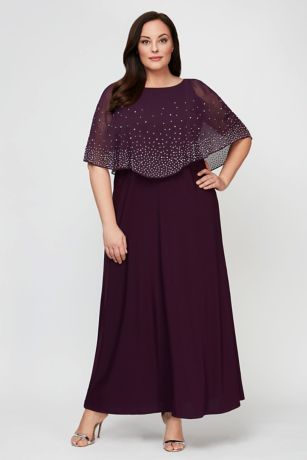 Topped with a beaded chiffon overlay, this A-line scoopneck plus-size dress is an elegant option for the mother of the bride or groom.