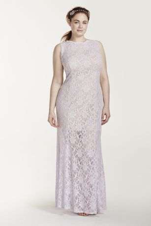 - All over lace dress features a high neck tank bodice for an ultra-elegant look.