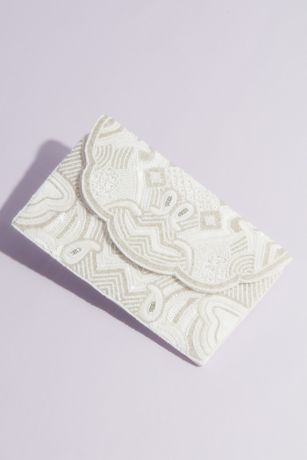 Allover Beaded Envelope Clutch with Scalloped Edge