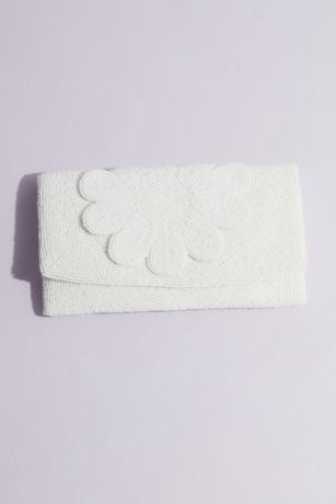 Add a whimsical finishing touch to your wedding looks with this beaded clutch featuring a mega-sized flower. Lined in cotton; holds your phone.
