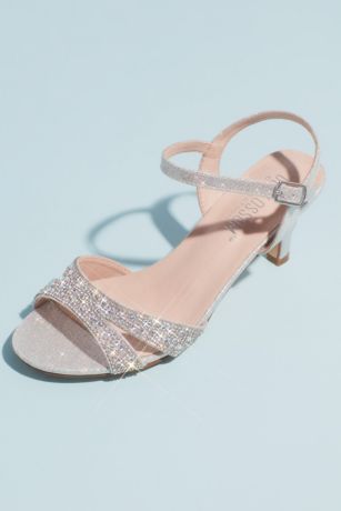 Add sparkle to your look in these pave crystal-encrusted strappy, low-heel sandals.