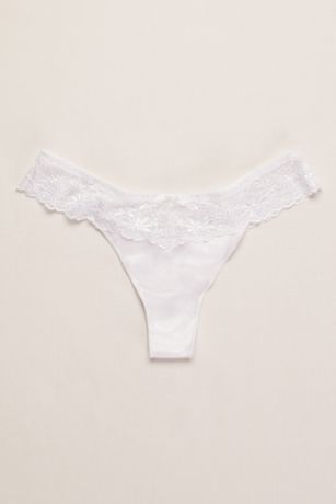 A bow at the center of the waist adds a sweet touch to this classic lace bridal thong.