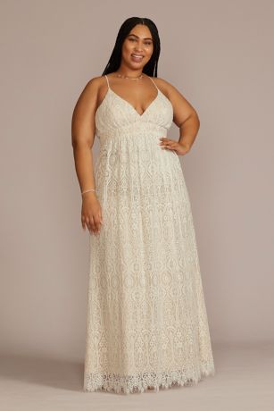 Allover Lace V-Neck Wedding Dress with Open Back