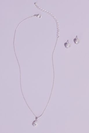 A perfectly matched pairing, this necklace and earrings set features almond-shaped cubic zirconia gems surrounded by sparkling halos.