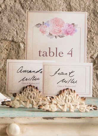These vintage inspired stationery holders are small, lightweight, and perfect for any vintage wedding. Their antique appearance and intricate detailing will add old-fashioned charm to your place settings or tabletop decor. Use them to hold place cards, table numbers, or other various signage throughout your event.