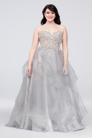 A dreamy dress for the belle of the ball, this layered-organza gown has a beaded illusion bodice for tons of sparkle, and horsehair trim on the skirt for gorgeous volume.