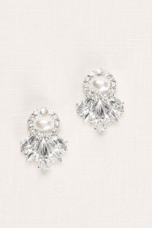 The ideal pearl earrings for layered shine, this pretty pair features a pearl center with a crystal halo and geometric crystals.