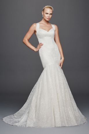 This alluring mermaid wedding dress features Zac Posen's signature seaming designed to contour the body. Paired with romantic Chantilly lace, the wide grosgrain ribbon straps add a modern detail and extra support.