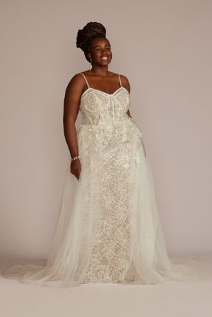 Lace Sheath Plus Size Wedding Gown Overskirt