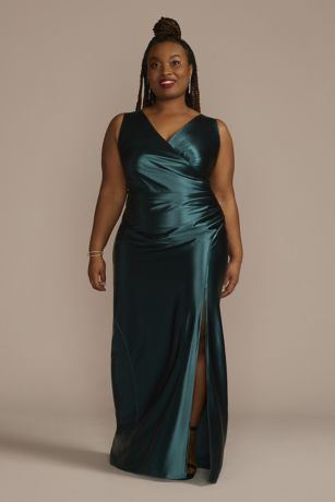 Sculpting Satin V-Neck Tank Sheath with Slit