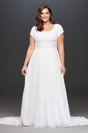 As Is Short Sleeve Chiffon Plus Size Wedding Dress