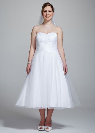 As Is Strapless Tea Length Plus Size Wedding Gown