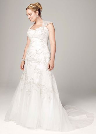 As-Is Tulle Over Satin Cap Sleeve Trumpet Gown