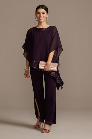 Asymmetric Chiffon and Embroidery Pant Suit Set