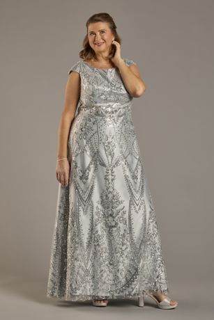 Exude elegance in this beaded cap sleeve dress, featuring delicate beadwork from the cap sleeves to the A-line skirt. Perfect for mothers of the bride or groom, this dress offers a blend of sophistication and graceful movement for the big day.