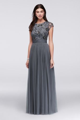 Beaded Cap Sleeve Dress with Tulle Skirt