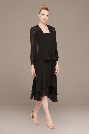 Beaded Chiffon Tiered Dress with Matching Jacket