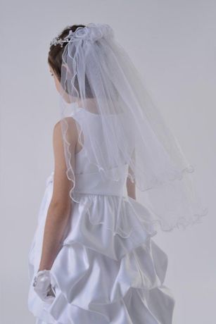 Dainty beaded flowers create a picture-perfect hair wreath, while a tulle veil completes the look.