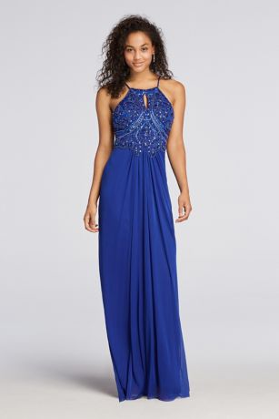 Beaded Halter Prom Dress with Keyhole