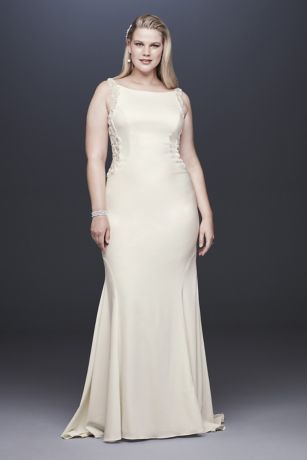 Beaded Illusion and Crepe Sheath Wedding Dress