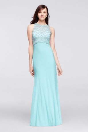 - Illusion high neck pop over is embellished with elegant crystal beading.