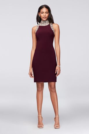 Beaded Mock-Neck Jersey Mini Dress