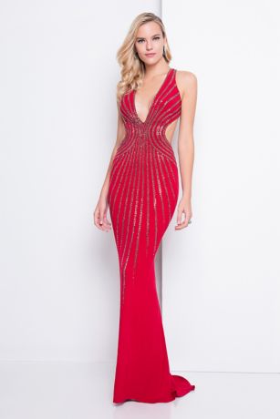With its open back, side cutouts, and metallic beading, this plunging V-neck jersey dress will ensure that all eyes are on you.
