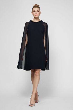 Beaded Short Sheath Dress with Attached Cape