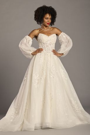 Beaded Tulle Wedding Dress with Detachable Sleeves