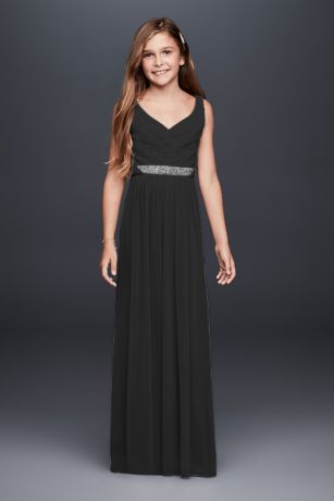 Beaded Waist Long Mesh Junior Bridesmaid Dress