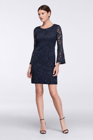 Bell sleeves give this lace cocktail dress a graceful finish.