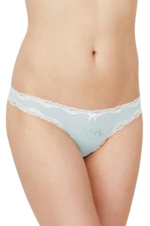 A cute first layer for your wedding day, this lace-trimmed thong sparkles with rhinestone "Mrs." lettering.